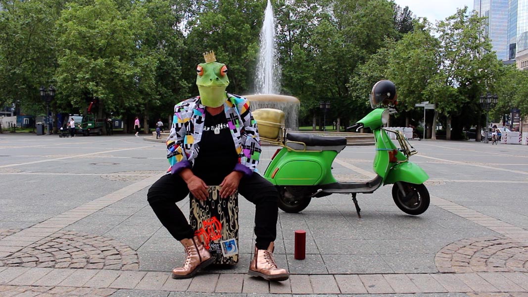 Alle Clubs geschlossen, alle Konzerte abgesagt ... da beschloss ich mit meiner ganz besonderen Maske als FEMALE FROG & "Froschkönigin" raus in die Stadt zu gehen, und Videoclipps zu drehen. 1.) Meine Band KICK LA LUNA und den Frauen-Power-Song: HIER SIND WIR im Gepäck. 2.) Meine Cajon auf dem Rücken, 3.) Meinen MP3-Player mit BOOM-BOX als Verstärker, Mit der Vespa als Transportmitel und eine/n beggeisterte/n Filmfrau//mann mit Kamrea konnte die Performan losgehn. Meine Botschaft für FRAUEN, FREIHEIT & DKULTUR sollte viele Menschen erreichen. Durch diese Aktionen wurde ich wieder "wachgeküßt", sie hat mich belebt und inspiriert und gezeigt, dass ich mit diesen 3 ZUTATEN immer und überall spielen kann. ...und DAS IST ERST DER ANFANG...